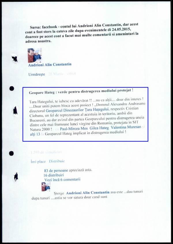 Hartuire Alin Andrioni asupra Primarului comunei Densus