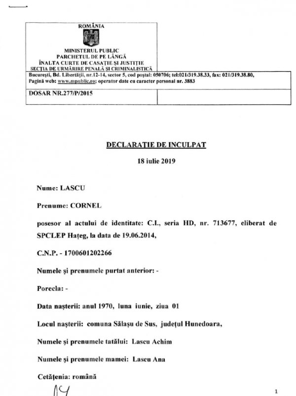 » Declaratie de inculpat Lascu Cornel 18.06.2019