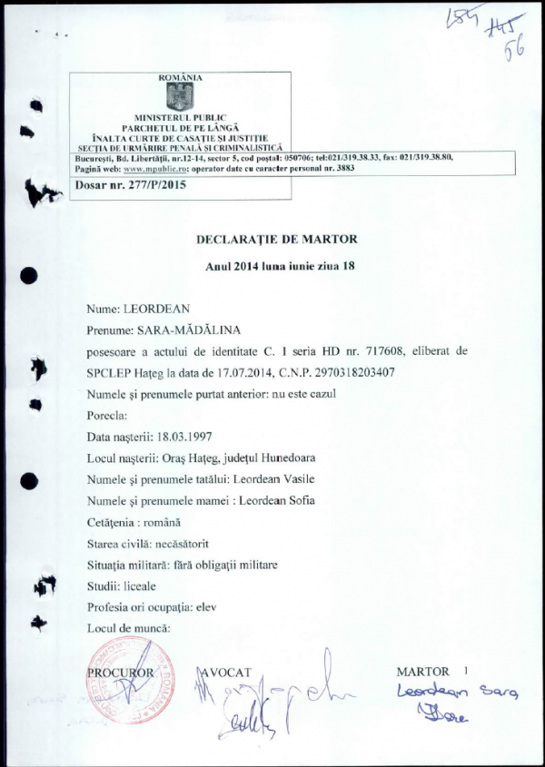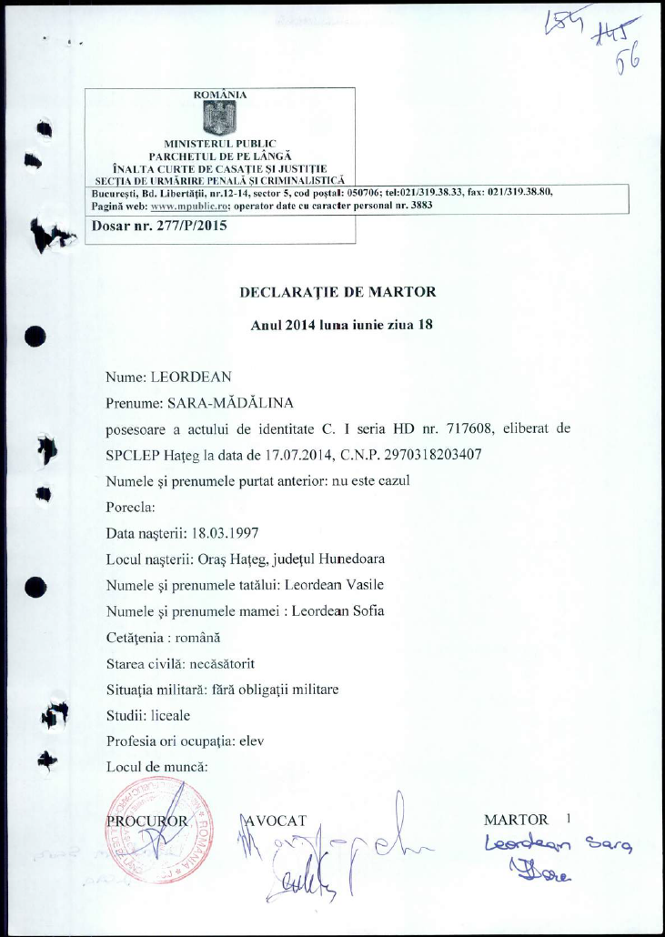 » Declaratie Leordean Sara-Madalina 19.06.2014