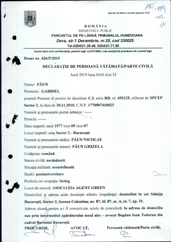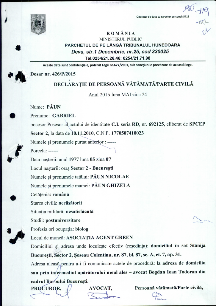 Proces Verbal de cercetare la fata locului 24.05.2015