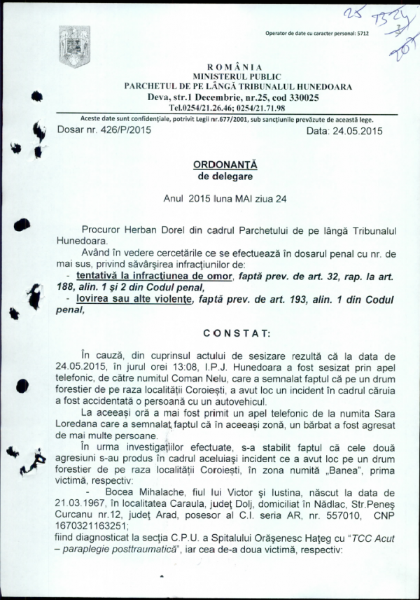 Ordonanta de dispunere a efectuarii constatarii medico legale 24.05.2015