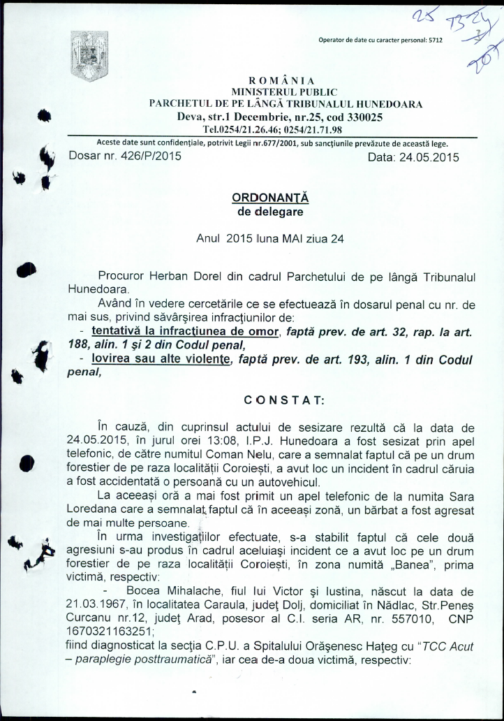 Ordonanta de dispunere a cercetarii la fata locului 24.05.2015