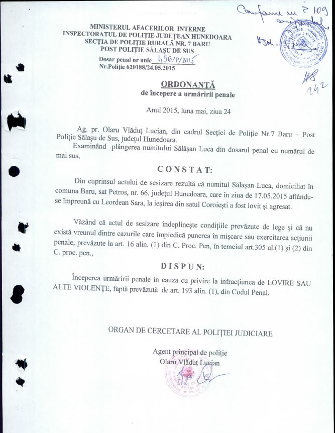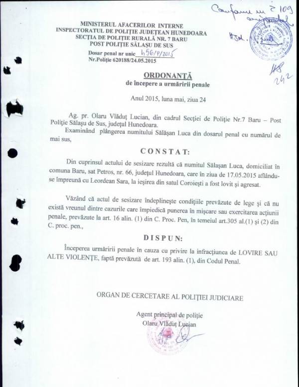 » Ordonanta de incepere a urmaririi penale 24.05.2015