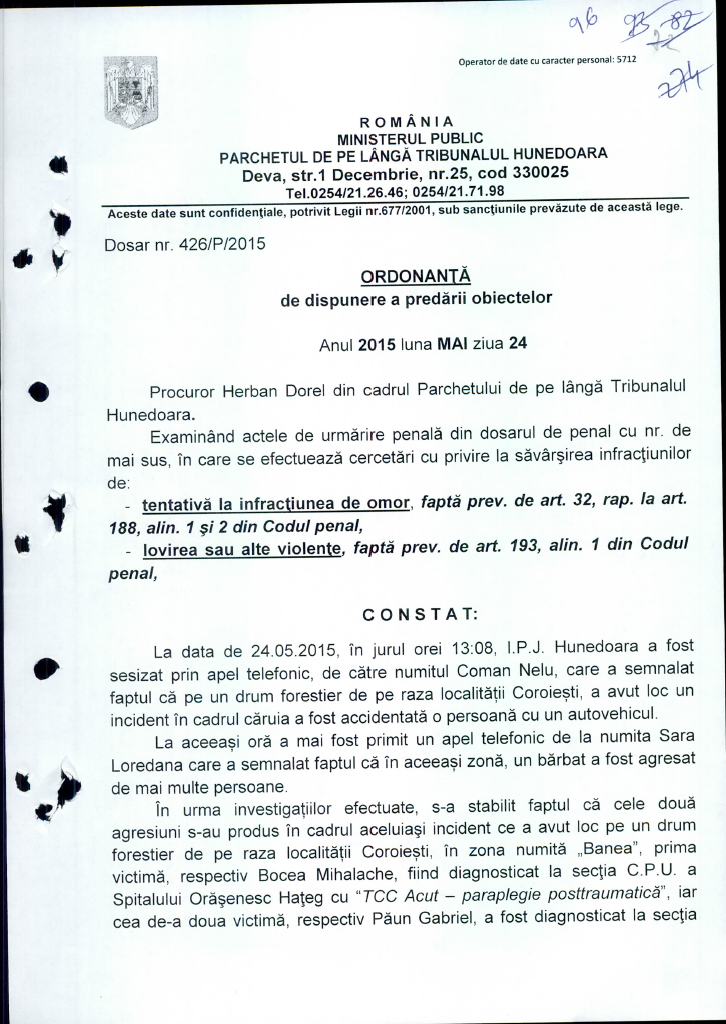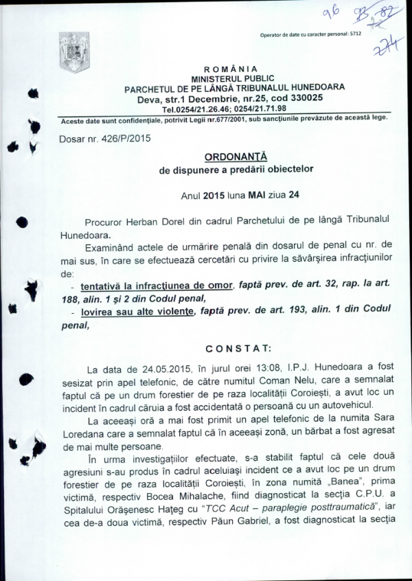 » Ordonante de dispunere a predarii obiectelor 24.05.2015