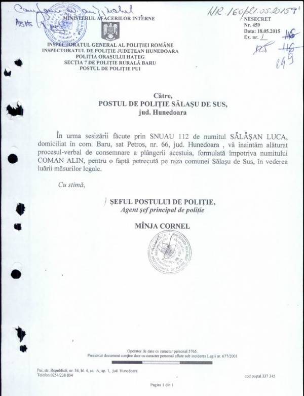 Plangere Salasan Luca impotriva Coman Alin 18.05.2015